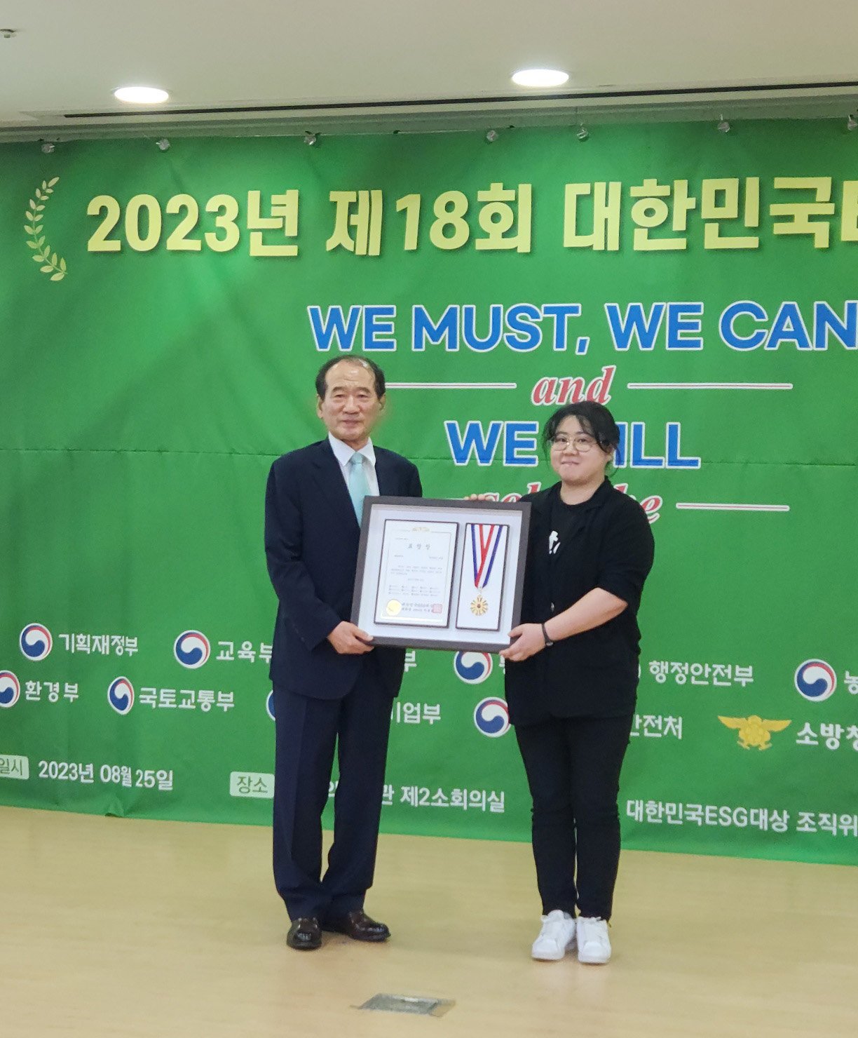 ㈜와플(대표 나모라)은 전시회 하루 전 8월 29일 대한민국ESG대상에서 표창장을 받았다. 사회의 희망과 행복을 위한 ESG활동으로 사회 발전에 기여한 공로를 인정한다는 내용이었다. 상장은 대회장인 국회의원 이용호 의원이 수여했다.