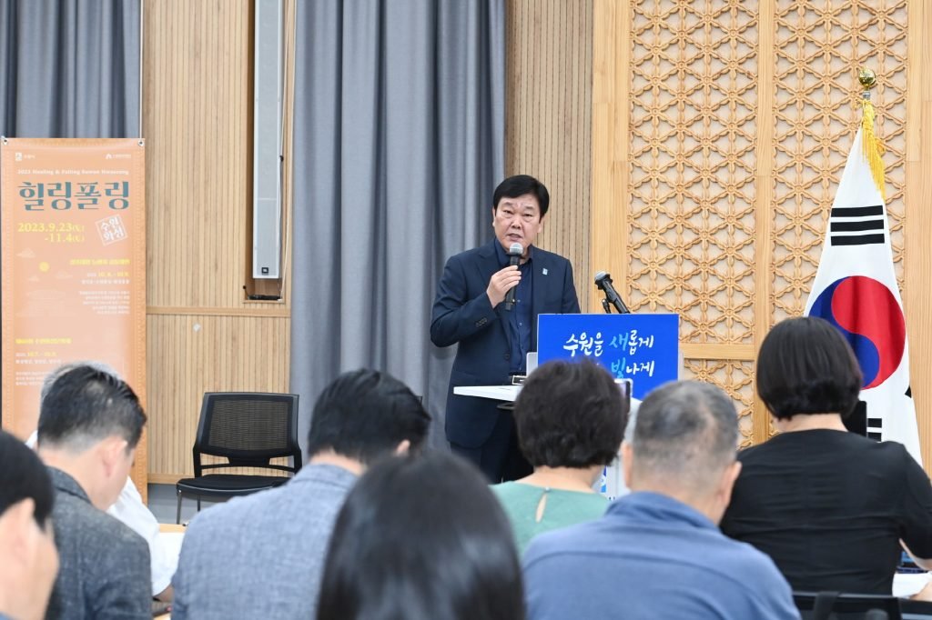 이상수 수원시 문화청년체육국장은 20일 시청 중회의실에서 열린 ‘민선 8기 정례 언론브리핑’에서 제60회 수원화성문화제를 비롯한 ‘2023 힐링폴링 수원화성’ 4개 축제를 소개했다.