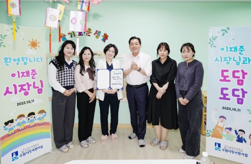 이어 이재준 수원시장은 어린이집 학부모들과 만나 어린이집에서 제공하는 간식, 출퇴근 편의성 등 불편 사항이 있는지 이야기를 나눴다.