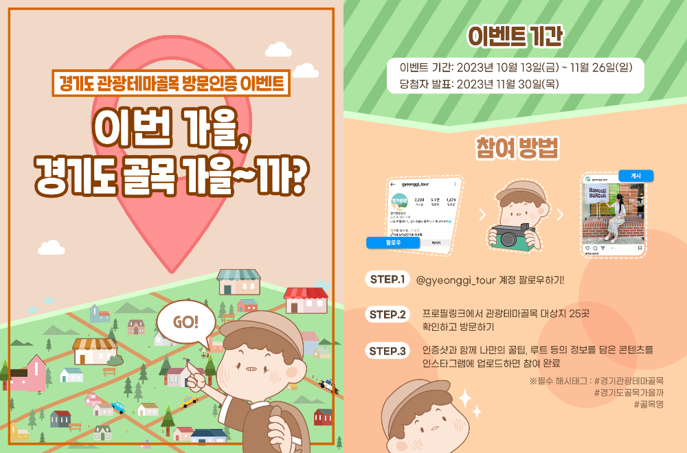 자세한 내용은 경기투어 인스타그램(@ggyeonggi_tour)의 골목 추천 이벤트 게시물에서 확인할 수 있다.