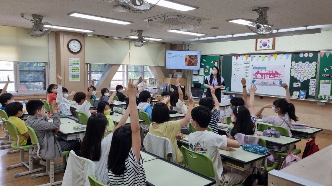 애니멀스쿨은 지난 4월 6일 내동초등학교를 시작으로 덕성초, 덕장초, 왕곡초, 포일초, 의왕초등학교 3~4학년 총 6개교 39학급을 대상으로 진행했다.