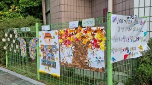 18일 기자는 우연히 우리 동네에 있는 금곡동 엘지빌리지 2단지 신애어린이집을 지나게 됐다. 그곳엔 알록달록 예쁜 그림들이 오가는 이들의 시선을 사로 잡고 있었다. 무슨 일인지 궁금해 사진을 찍고 있는 신애어린이집 원장님과 이야기를 나눴는데 “이번 전시회는 아이들이 그린 그림과 작품을 전시해 같은 단지에 거주하는 어르신들과 부모들에게 보여줌으로 함께 소통하고 공유하는 시간을 갖고자 결실의 계절인 10월을 맞아 이 행사를 준비했다”고 했다. 이 전시회는 해마다 열린다고 했다. 어린이집 앞에서 작품을 들고 천진난만하게 사진을 찍고 웃고 있는 아이들을 보니 간 만에 나도 모르게 미소가 지어진다. 순수하게 그려진 작품들이 지나는 이들에게 행복과 동심을 생각나게 한다...