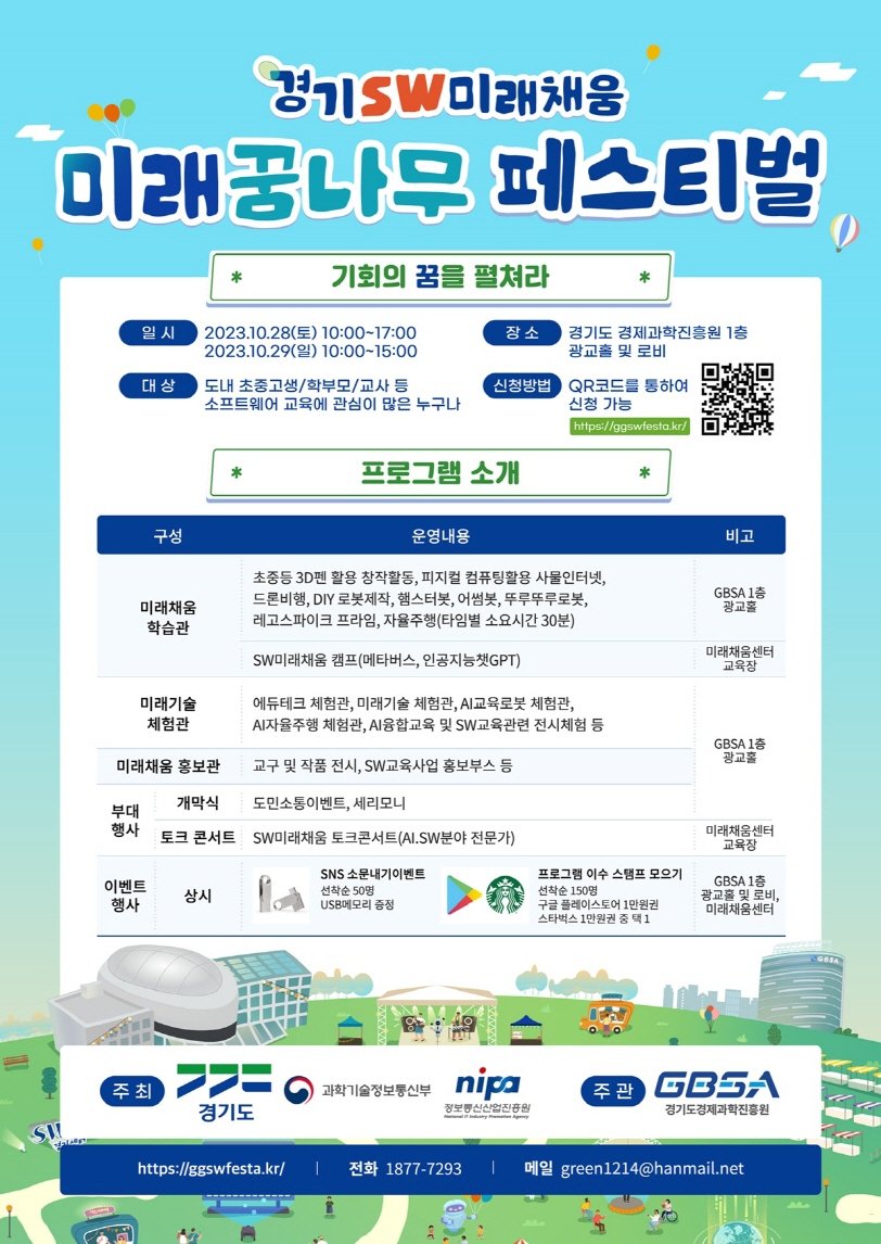 경기도와 경기도경제과학진흥원은 오는 28~29일 양일간 경기도경제과학진흥원에서 2023 경기소프트웨어(SW) 미래채움 페스티벌을 개최한다.