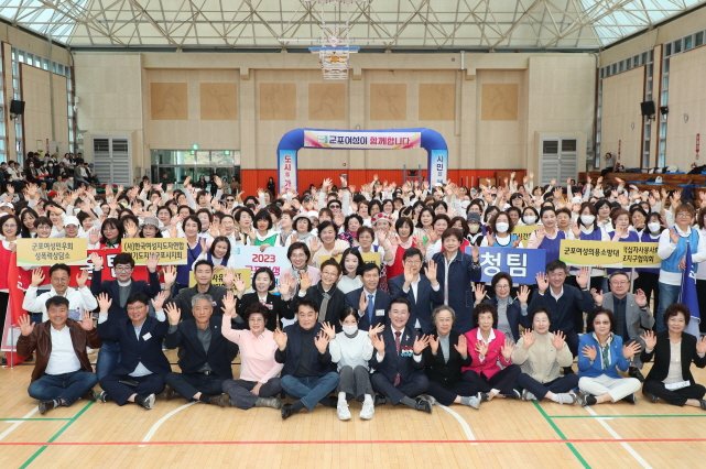 군포시는 27일 시민체육광장에서 13개 여성단체 650여 명이 참석한 가운데 여성단체의 화합과 소통, 결속을 다지는 2023년 군포여성 한마음대회를 개최했다.