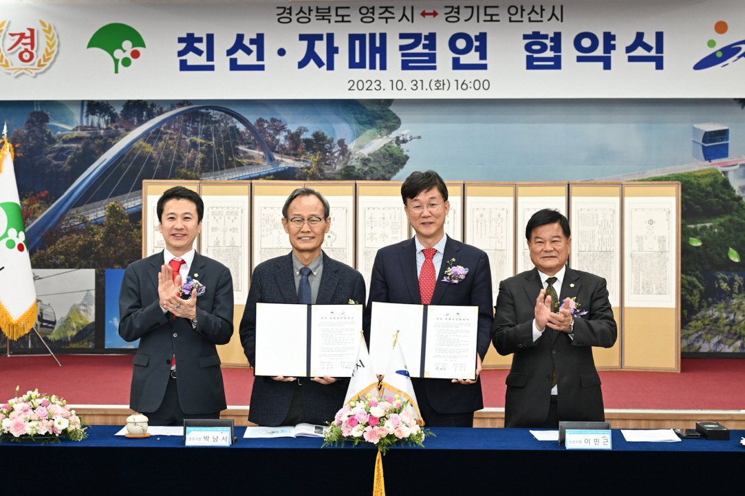 지난달 31일 영주시청에서 열린 협약식은 이민근 시장, 송바우나 안산시의회 의장과 박남서 영주시장, 심재연 영주시의회 의장 등이 참석한 가운데 진행됐다.