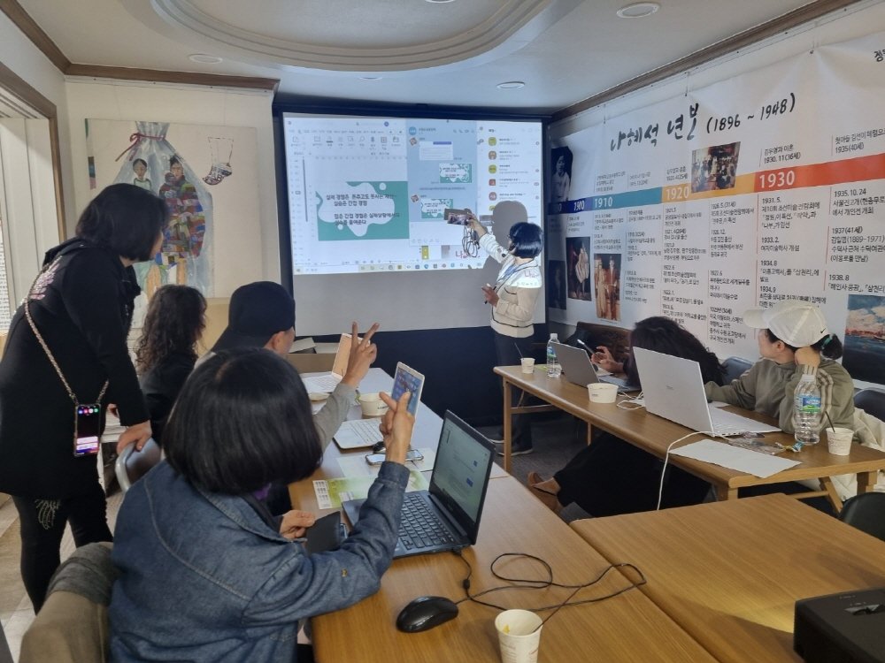 수원문학인의 집에서 열린 이번 에듀버스 교육에서는 생업으로 바쁜 소상공인을 대상으로 챗GPT,스마트폰 활용방법 등을 교육했다.