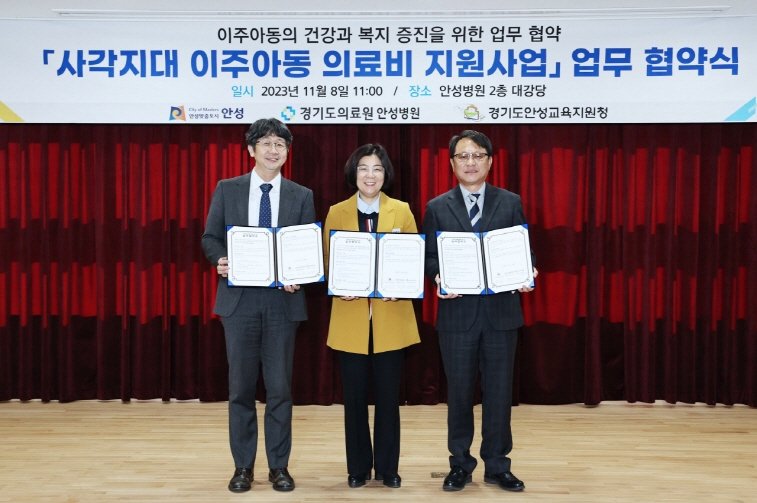 안성시는 지난 8일 경기도의료원 안성병원 및 안성교육지원청과 함께 관내 사각지대 이주 아동의 의료비 지원을 위한 업무협약을 체결했다.