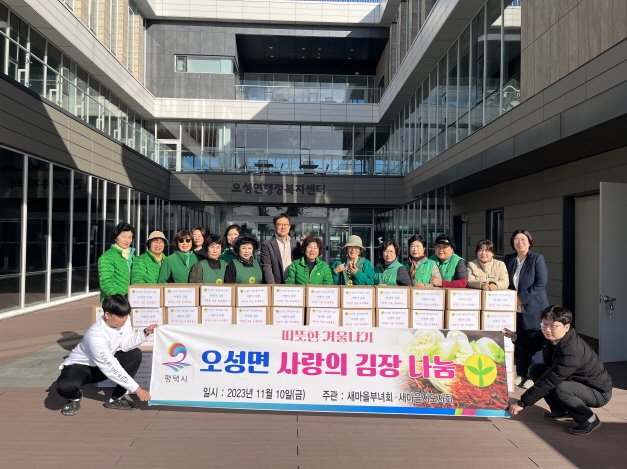 김재중 오성면장은 “도움의 손길이 필요한 어려운 이웃들에게 온기를 나누기 위해 사랑의 김장 담그기 행사에 참여하신 회원들께 감사드리며, 면에서도 따듯한 지역사회를 만들기 위한 행정적 지원에 최선을 다하겠다”라고 말했다.
