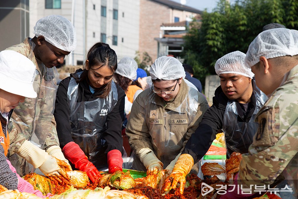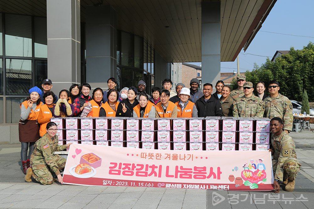 미8군 예하 제1통신여단은 15일 팽성읍자원봉사나눔센터와 공동으로 지역 내 소외계층을 위한 ’김장김치 나눔봉사‘를 진행했다.