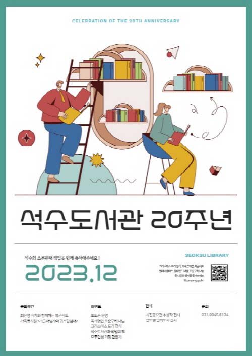 안양시 석수도서관은 개관 20주년(12월 19일)을 맞아 12월 한 달간 풍성한 특별행사를 진행한다고 22일 밝혔다.