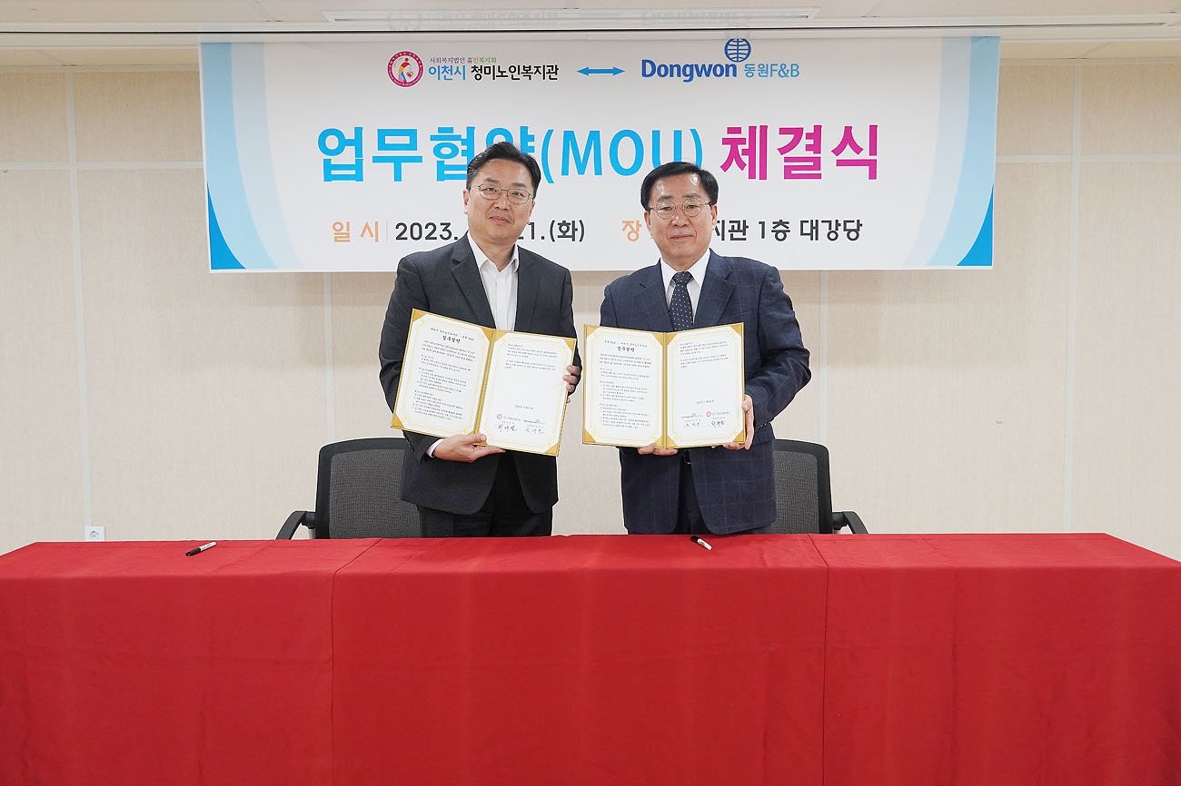 이천시 청미 노인복지관은 동원 F&B와 지난 21일 지역사회 노인복지 증진 및 사회공헌 활성화를 위한 업무협약을 체결했다.