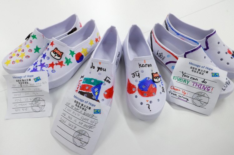 ‘희망나눔 운동화’는 용인 지역 내 학교에서 진행 중인 ‘청소년 국제매너 캠프’ 프로그램 중 하나다. 프로그램에 참여한 학생들은 맨발로 일하는 남수단의 어린이들을 위해 직접 꾸민 운동화 360켤레와 응원의 메시지를 담은 편지를 (사)미래희망기구를 통해 전달했다.