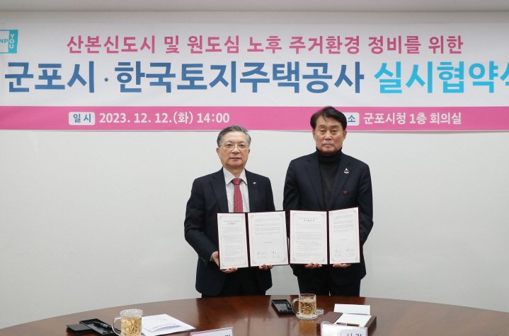 군포시와 한국토지주택공사(LH)은 12월 12일 산본신도시 및 원도심 노후주거환경 정비를 위한 실시협약을 체결하였다.