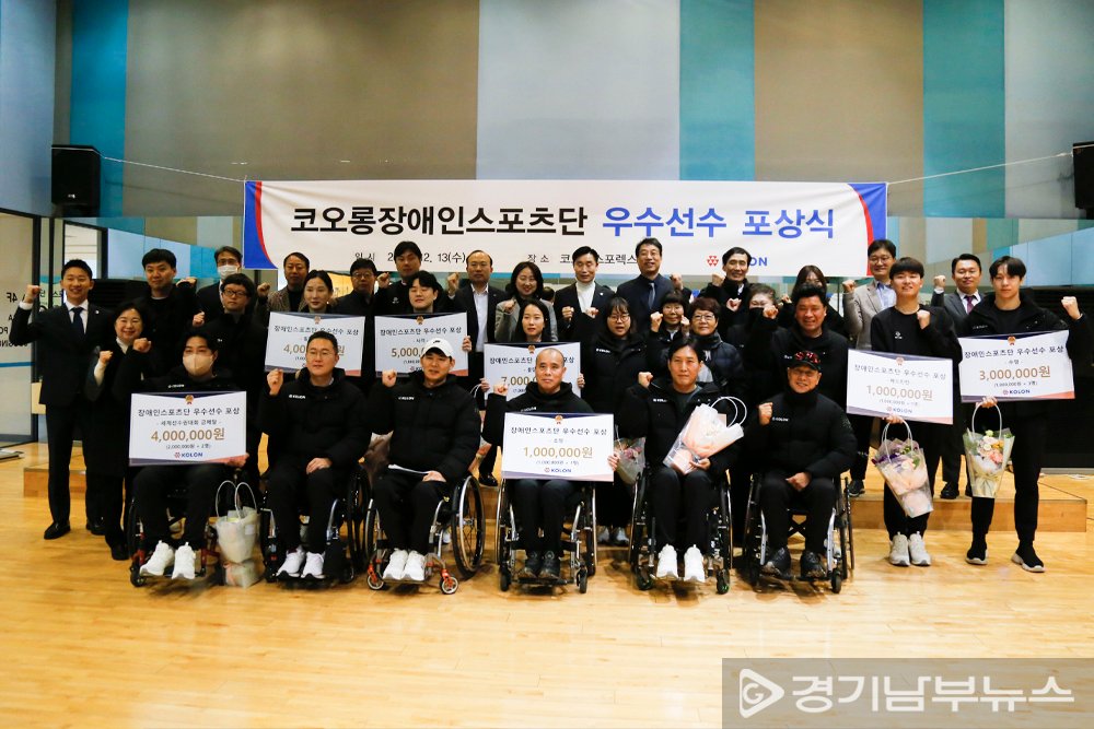 코오롱은 13일 자사 장애인스포츠단 소속 선수들의 2023년 성과를 격려하기 위한 포상식을 코오롱스포렉스(서초)에서 진행했다.