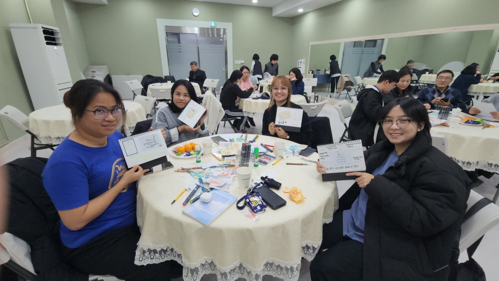 내년 한 해의 소망을 담은 ‘나만의 달력 만들기’ 프로그램을 진행하며 즐거워하는 다문화 참석자들