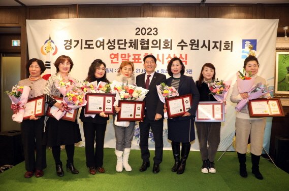 수원 특례시의회 김기정 의장이 21일 2023년도 경기도 여성단체협의회 수원시지회 유공 표창 시상식에 참석하여 지역사회 봉사활동을 위해 노력한 회원 13명에게 감사의 마음을 담아 표창을 수여했다.