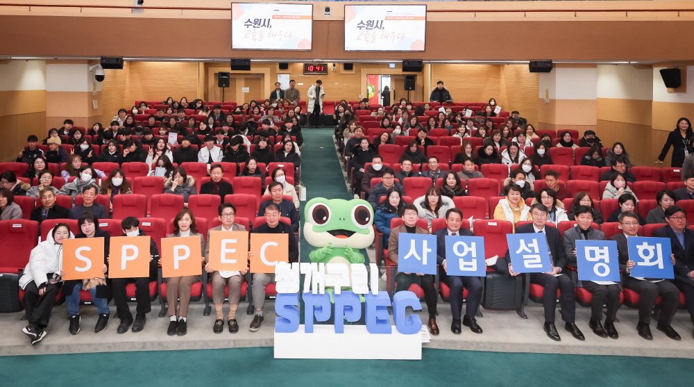수원시는 22일 시청 대강당에서 2024년부터 시작하는 수원시 교육브랜드 '청개구리 스펙(SPPEC)'의 사업설명회를 개최했다. 이날 사업설명회는 숏폼 공모전 영상 상영, 수원시 청소년 뮤지컬단의 식전 공연, 청개구리 스펙 사업, 도도한 프로젝트 사업 설명 등으로 진행됐다.