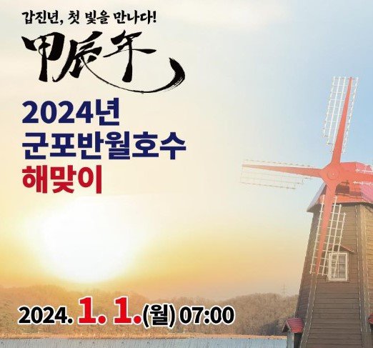 군포시 반월호수에서 오는 1월 1일 오전 7시 2024년 갑진년 해맞이 행사가 열린다.