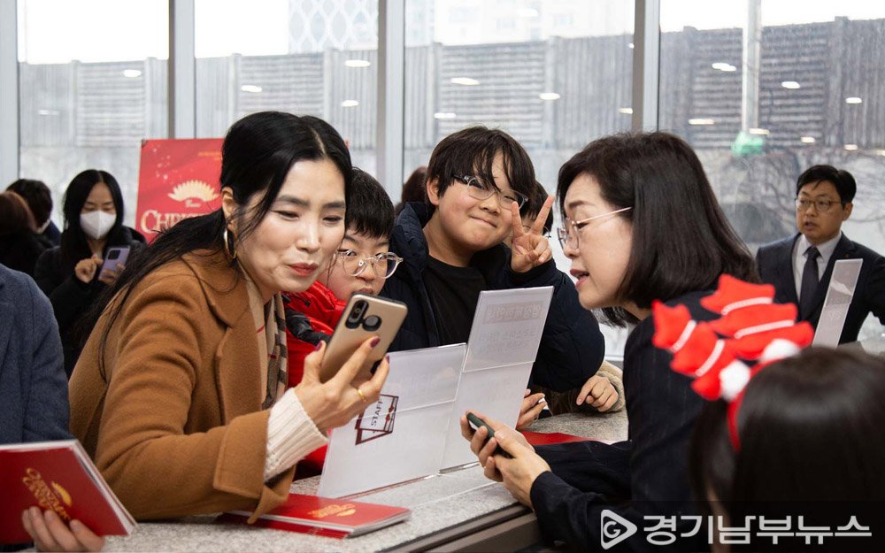 [특별취재] 2023 크리스마스칸타타 용인포은아트홀, ‘2시간의 감동’ 그리고 관객이야기. 그라시아스합창단의 크리스마스칸타타 전국투어가 12,14~17 용인을 찾았다. 사진은 14일 첫날 티켓박스의 표정. 경기남부뉴스(사)한국장애인문화협회 용인시지부 주최, 그라시아스합창단 주관의 크리스마스칸타타가 공연됐다. 그야말로 폭발적인 반응이었다. 12.14~15일(15:30, 19:30), 16일(14:00, 18:00), 17일(15:30) 용인포은아트홀 대극장은 만석을 이뤘고 로비는 남녀노소로 가득했다. 티켓박스와 포토존은 연신 긴 줄이 이어졌다.