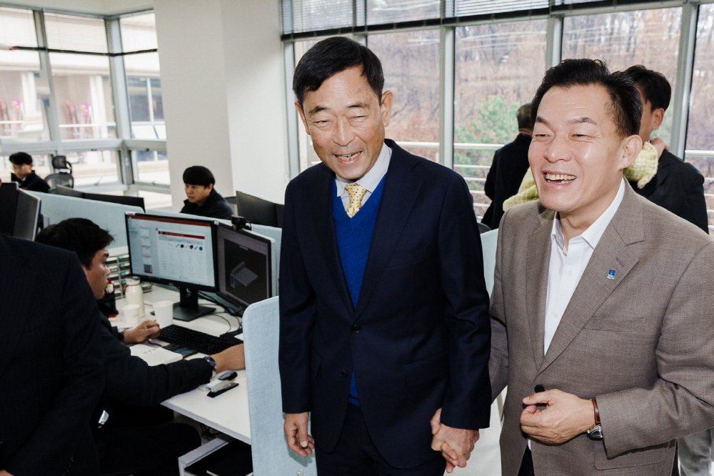 지난 7월 수원특례시와 투자유치 협약을 맺은 우주일렉트로닉스가 지난 12월 15일 광교사무소를 개소해 이재준 시장이 현장방문을 하고 있다.
