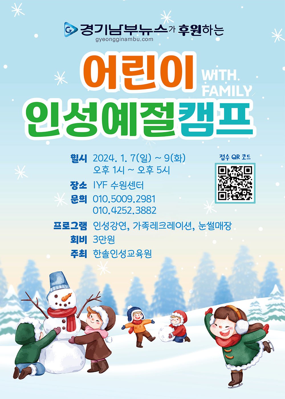 이번 한솔인성교육원의 ‘어린이 인성예절캠프 WITH FAMILY’는 경기남부뉴스가 후원한다.