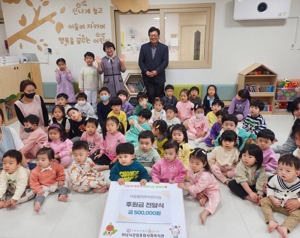 하남시감일종합사회복지관(사회복지법인 휴먼복지회 운영)은 지난 12월 28일 시립꿈마루어린이집을 방문하여 후원금 전달식을 진행했다고 밝혔다.