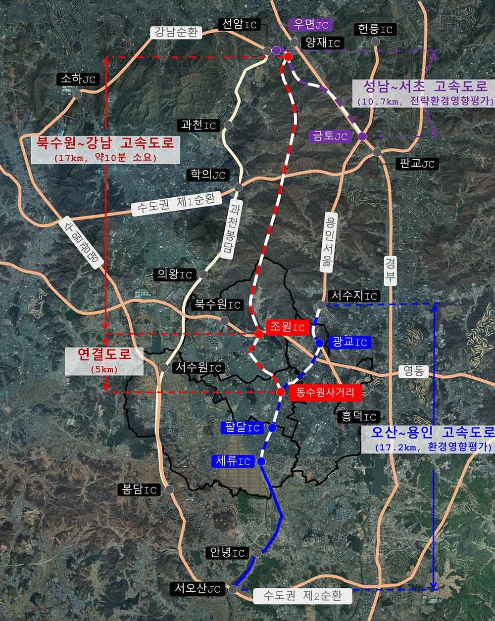 또한, "북수원∼강남 고속도로를 동수원사거리에서 오산∼용인고속도로와 접속시켜 서울 통행 교통량 분산"에 관한 내용도 추가했다.