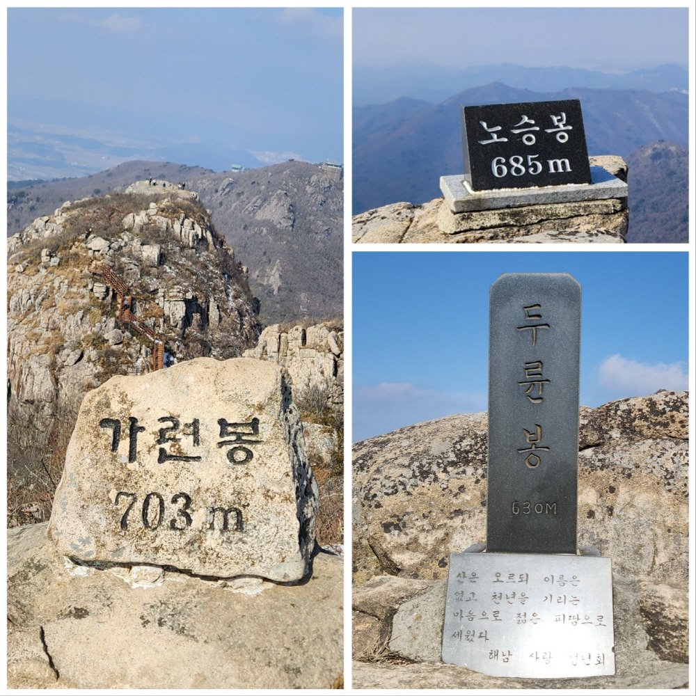 두륜산을 가기위해 금요일 밤 부천 동생집에서 자고 27(토)일 새벽 6시40분에 송내역에서 두륜산으로 가는 산악회버스를 타고 출발했다. 11시50분에 도착해 산행을 오심재쉼터에서 시작했다. 오심재까지 천천히 고도를 오르니 오심재에 우측으로는 고계봉(케이블카)이 보였고, 좌측으로는 노승봉이 보였다. U자 모양의 중심에서 노승봉헬기장으로 아주 가파르게 눈길과 빙판을 오른다. 한참을 오르니 흔들바위와 헬기장에 도착했다. 노승봉으로 올라 지나온 길을 보니 우측으로 덕룡산 주작산 칼날바위(공룡능선)가 보였는데, “와~ 웅장하다” 감탄 또 감탄이 절로 나왔다.