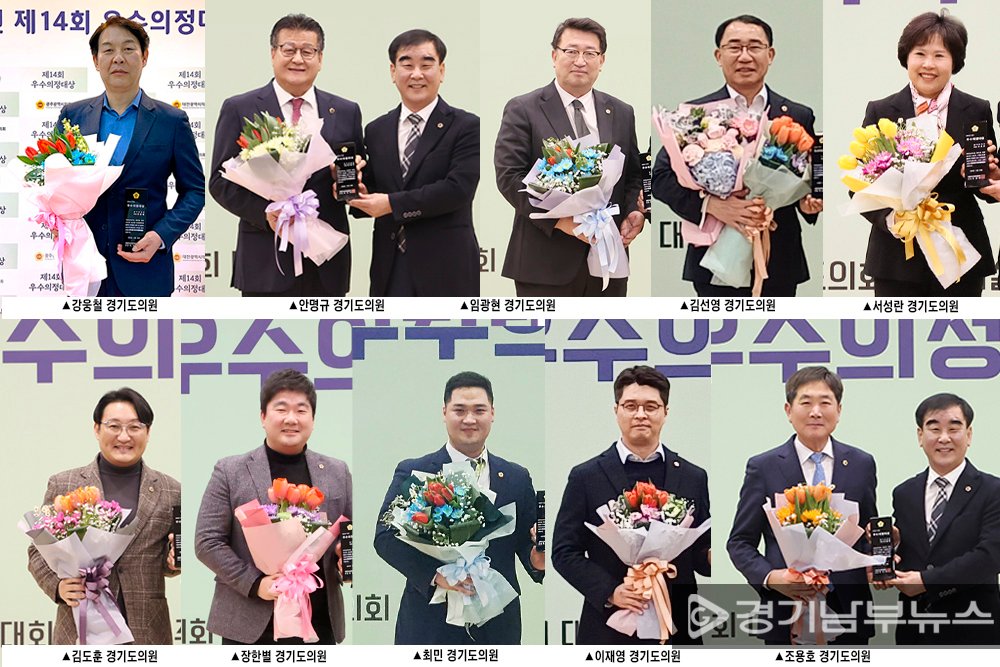 경기도의회 강웅철, 안명규, 임광현, 김선영, 서성란, 김도훈, 장한별, 최민, 이재영, 조용호 의원 등 32명의 의원은 대한민국시도의회의장협의회로부터 우수의정대상을 수상했다.