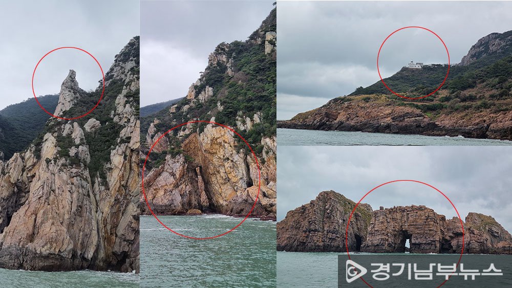 왼쪽부터 시계방향 순으로 따봉바위(엄지척), 코카골라병바위, 유인등대, 독립문바위 _2024.2.23 경기남부뉴스