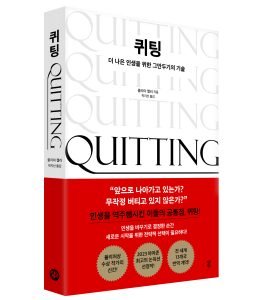 누구나 그만두고 싶을 때가 있다. 지금 내가 올바른 방향으로 가고 있는지 확신이 들지 않을 때, 들이는 노력에 비해 보상이 너무 적다고 느낄 때, 내가 원하는 것과 다른 결과를 얻었을 때 우리는 방향을 바꿔야 한다고 느낀다. 어떤 경우든 방향을 바꾸기 위해선 속력을 늦추고 때로는 멈춰 설 필요가 있다. 내 인생에 새로운 것을 채워 넣기 위해서는 지금 가득 들어차 있는 것을 비워내야 한다. 두 손에 가득 들고 있는 것을 내려놔야 다른 것을 내 손에 쥘 수 있다. 이 모든 것에 관해 알려주는 책이 바로 《퀴팅(Quitting)》이다.