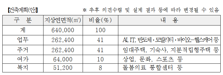 경기도는 추가 재정 부담 없이 기존의 공공자산의 효율성을 높여 개발을 진행할 예정이다. 사업비 규모는 3조6천억원으로 경기도가 경기주택도시공사에 인재개발원 부지의 93%를 차지하는 14만3천㎡를 현물출자 하고, 경기주택도시공사가 이를 담보로 공사채를 발행해 충당할 계획이다.