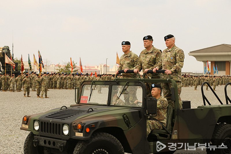 주빈단인 라캐머라 주한미군사령부사령관, 벌러슨 이임 미8군사령관, 라니브 신임 미8군사령관 (캠프 험프리스, 사진: 경기남부뉴스)