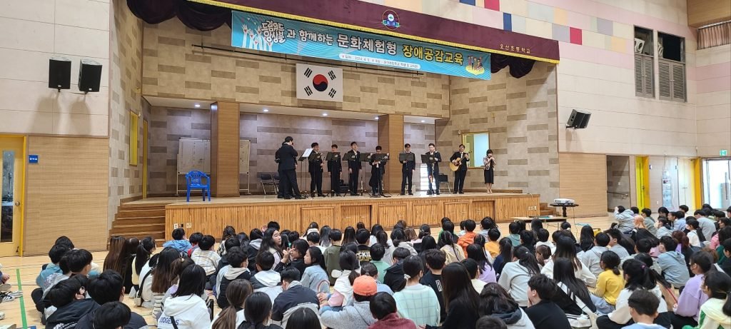 오산초등학교(교장 조규태)는 제44회 장애인의 날을 맞이하여 ‘드림위드앙상블’을 초청하여 학생 및 교직원을 위한 장애인식개선교육을 실시했다.