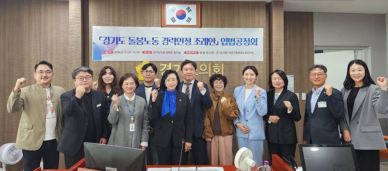 경기도의회 정윤경 의원(더불어민주당, 군포1)은 ‘경기도 돌봄노동 경력인정 조례안’ 입법공청회 개최. 12일 여성가족평생교육위원회 회의실