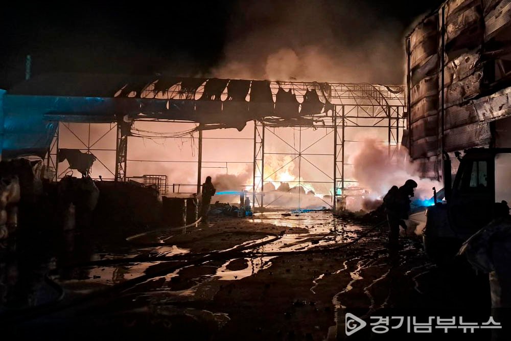 경기도소방재난본부는 경기도 화성시 마도면 자원순환시설에서 화재 발생, 신속한 대피로 인명피해는 없었고 1개동 천막조가 불에 탔다고 15일 밝혔다.