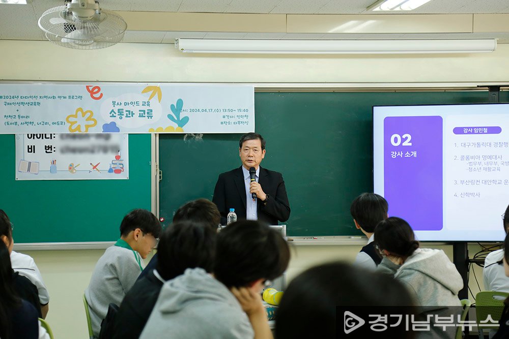 국제인성평생교육원, 17일 천천고등학교의 ‘2024년 다다익선 지역사회 연계프로그램’ 첫날 봉사자 소양교육 진행