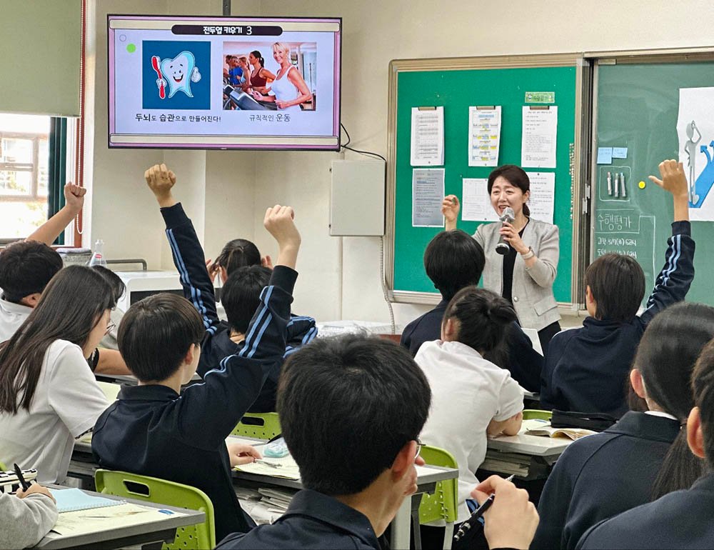 특히 이번 ‘마인드파워업’은 국인평 산하 해피마인드교육원과 연계해 상촌중 ‘진로의날’에 맞게 기획됐다. 중학교 2학년 11개 학급 대상으로 각반에 전문강사가 1명 또는 2명씩 배치돼 4교시 동안 강연, 마인드퀴즈쇼, 워크북 작성 등 학생들의 높은 만족도를 이끌어냈다.