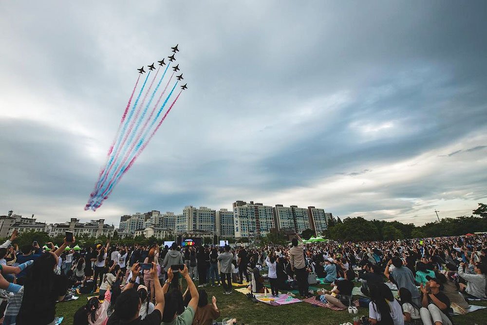 제2회 광산 뮤직 ON 페스티벌에 2024년 5월 4일(토) 광주광역시 광산구 황룡친수공원은 멋진 비행이 더해졌다. 대한민국 공군 블랙이글스의 축하비행이었다.