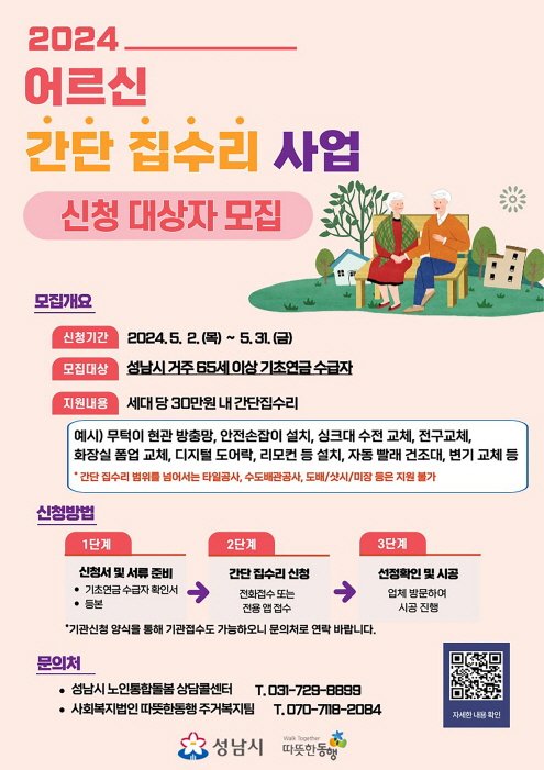 성남시, 어르신 간단 집수리 신청 안내 홍보 물 포스터