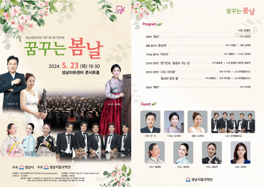 성남시립국악단 '꿈꾸는 봄날' 연주회 포스터 및 프로그램