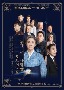 6월 27일 개막하는 음악극 <누가 이 사람을 모르시나요>는 길고 긴 여운과 진한 카타르시스를 느끼게 만드는 작품이다. 한국전쟁의 비극을 시작으로 한 여인의 엇갈린 사랑과 증오, 그리고 용서의 과정을 통해 격동의 한국 현대사를 살아온 우리의 부모님 세대를 위로하고 진한 감동을 주는 이야기이다. 시대가 만든 비극 속에서 파란만장한 삶을 살아야 했던 우리 부모님들의 서러운 눈물을 그 시대를 대표했던 추억의 음악들을 손수건 삼아 닦아주고 위로하는 품격있는 음악극으로 성남아트센터 오페라하우스에서 그 화려한 막을 올린다.