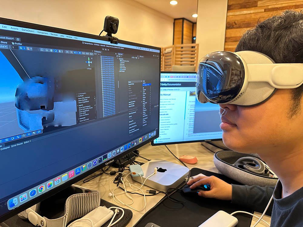 HMD(Head Mounted Display)의 해상도가 안 좋거나 처리 속도가 느리고 기계 자체가 무겁고 거추장스러운 이런 조건들이 너무 많다 보니 좀 번거롭다. 또 원격으로 한 자리에서 UX를 진행하는 부분에 곤란함이 있다. 그러나 분명 개선이 될 거라 확신했다. 왜냐하면 전자기기는 점점 좋아지고 발전하기 때문이다. 그러다가 애플이 제품을 준비하고 있다는 것을 여러 언론에서 들었다. 애플이 만들면 이거는 ‘게임 체인저’가 될 수 있다는 생각을 했다. 없던 시장도 만드는 힘이 있는 빅테크 아닌가. 여기서 나올 것을 대비하고 있으면 사업 기회가 있을 거라 생각했고 2021년 말 UX컨셉개발 파트장으로 퇴사를 했다. 당장 사업을 시작하는 건 리스크가 있기에 먼저 창업한 선배 회사에서 경영도 배우면서 1년 반 일했다.