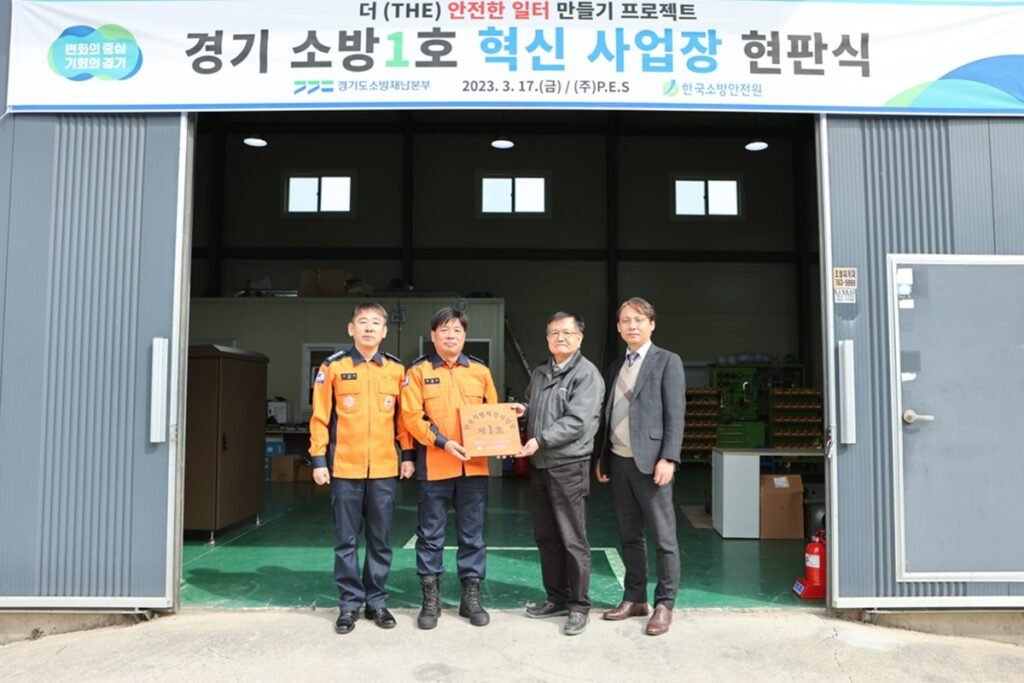 경기도 소방재난본부는 지난 17일 광주시 소재 군부대 제습기 납품업체인 ㈜PES를 소방 안전 혁신사업장으로 선정하고 현판식을 했다고 19일 밝혔다.
