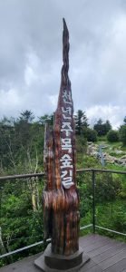 10일(토) 발왕산에 케이블카를 타고 정상부와 천년주목숲길을 다녀왔다. 높은 고산이라 그런지 밑에 지역 날씨는 무척이나 습하고 더웠는데 케이블카를 타고 정상에 올라가니 찬바람이 장난이 아니었다. 갑자기 계절이 바뀐 느낌이었다. 날씨 또한 안개가 자욱이 껴 아쉽게도 그 아름다운 경치를 볼 수가 없어 아쉬웠다. 아쉬움을 뒤로한 채 500m 정도 걸어 정상에 올라 인증사진을 찍은 후 기대하던 천년의숲길로 발걸음 재촉해 본다. 숲은 데코길로 편안하게 남녀노소 누구나 걸을 수 있게 되어 있었다. 한 걸음을 뗄 때마다 여기저기에서 감탄의 소리가 들려왔다. 어찌나 기이한 나무들이 많은지 생전 보는 처음 나무들로 빽빽이 차 있었다.