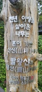 한참을 걸어가자 겸손의 나무가 나오고 천년의 주목들이 여기저기서 자태를 뽐내고 있었다. 보면 볼수록 신기한 모습에 눈을 뗄 수가 없었다. 잠시 감상을 하고 있자니 휠체어 한 대가 지나간다. 어느 중년분이 어머니를 모시고 올라오셨다. 잠시 그 모습을 보고 있자니 대단한 생각이 들었다. 어머니가 얼마나 행복하실까? 마음이 뭉클해진다. 자연을 보며 힐링도 되지만 산에 올 때마다 만나는 사람들을 통해 많은 생각을 가지게 된다. 아무 준비 없이 올라간 산이라 같이 간 아내가 목이 마른다며 물을 찾는다. 다행히 천년의숲길에는 발왕수 가든(약수터)가 있다. 발왕수는 순백의 눈이 단단한 퇴적암에 스며든 물로 우리 몸의 균형을 맞춰주는 천연 암반수 물이다. 이곳은 대한민국에서 가장 높은 곳에서 솟아나는 한강의 발원지이기도 하다. 얼마나 물이 시원하고 달은 지 몇 잔을 연거푸 마셨다. 최고의 숲길 천년주주목들의 모습에 경이로움과 자연의 신비, 위대함을 봅니다. 오늘 자연 앞에 감사한 마음을 듬뿍 받습니다. 감사가 넘치는 이유는 자연 앞에 작은 나를 발견하고, 겸손의 나무 앞에서 한번 생각해보는 시간 또한 특별한 시간이었다. 아내와 아내의 36년 지기 친구와 함께한 3박 4일의 시간. 좋은 추억을 만들어 감사했고, 선자령, 대관령옛길, 정동진부채길, 발왕산을 끝으로 여행을 마무리한다.
