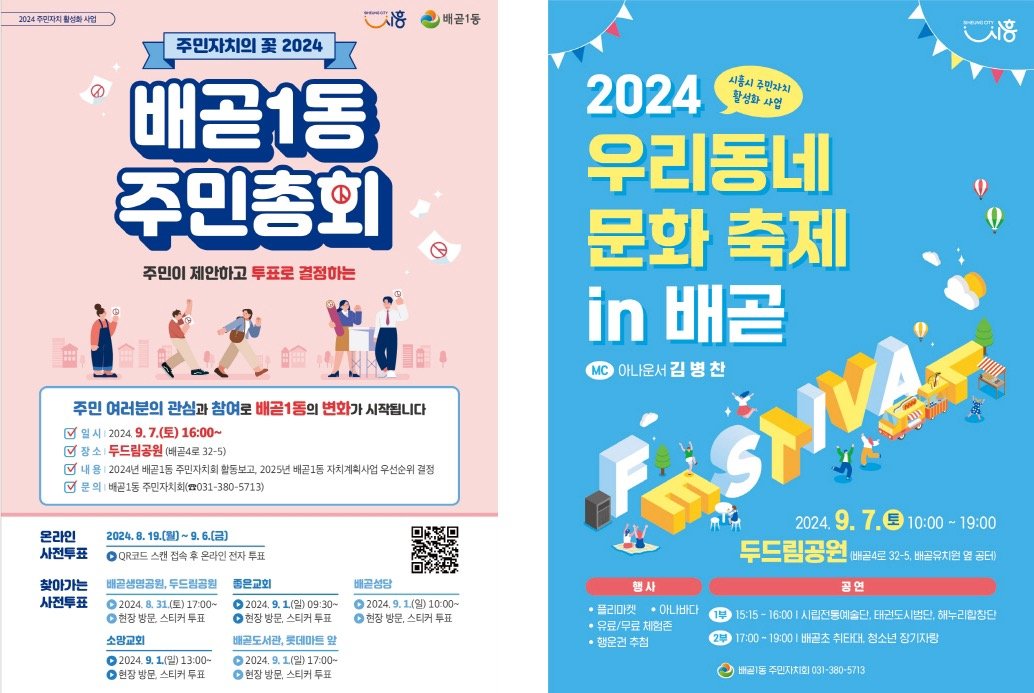이번 배곧1동 주민총회에서는 지난 5월 주민자치회가 주민 의견수렴을 통해 발굴한 7개의 자치계획사업에 대해 주민 투표가 진행될 예정이다. 또한, 주민총회 당일 참여가 어려운 주민들을 위해 8월 19일부터 9월 6일까지 찾아가는 사전투표와 온라인 사전투표를 진행한다.