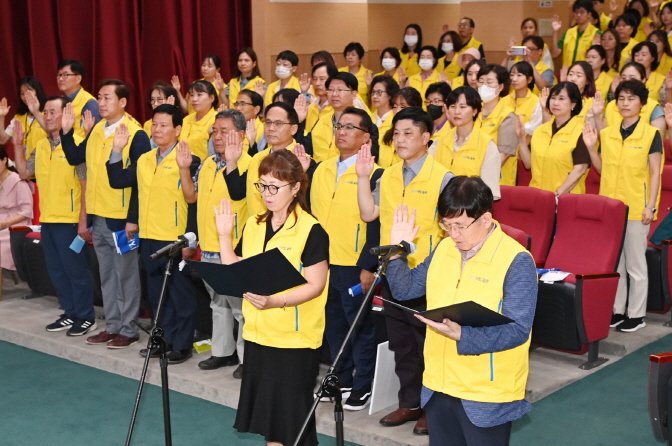 지난해8월 새빛돌보미 발대식에서 새빛돌보미들이 선서를 하고 있다.
