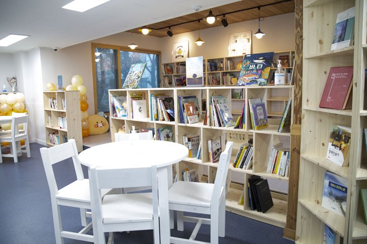 한화건설과 카카오의 협력으로 최근 개관한 안산평화의집 작은도서관, 친근한 캐릭터들이 도서관을 찿는 시민을 반기고 있다.