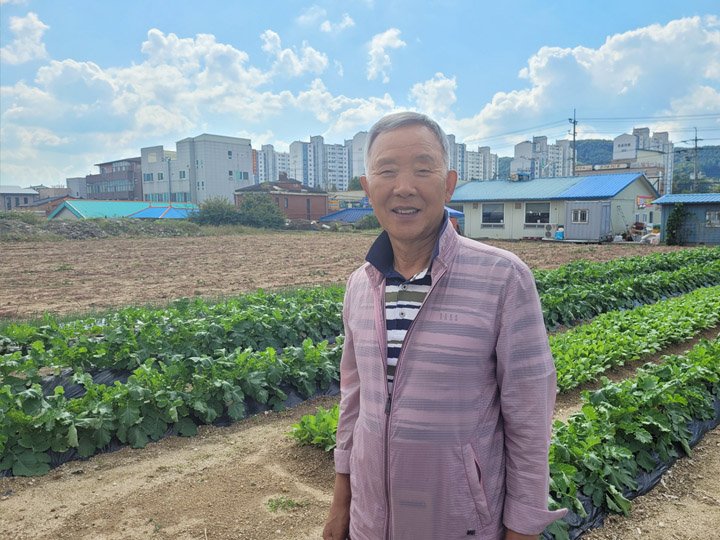“뭐 이런 걸 자꾸 묻나, 쑥스럽게. 그냥 이 밭에 뭐 심을까 하다가 고구마를 심어 도와주면 좋겠다고 생각했다. 고구마, 호박, 무를 심어서 나눠드리고, 휠체어도 구입해 필요한 분께 드렸다. 그분들이 기뻐하니 나도 기쁘지 않나. 고구마 캐려던 2일 비가 예보 돼 있어서 중앙동행정복지센터 천막 2개 세우고 고구마를 캐서 상자에 담고 2시간 있다가 비가 왔다.”